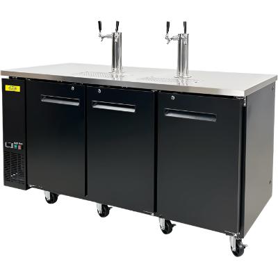 - 72″ wide kegerator with capacity for 3 half-barrel kegs