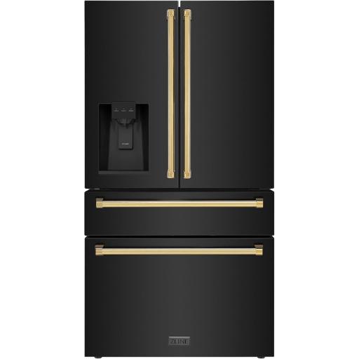 ZLINE Autograph 36″ Black Steel Counter-Depth Refrigerator with Gold Handles – Matte Finish