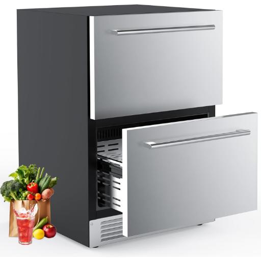 The EUHOMY 24-Inch Double Drawer Fridge is a refined addition for kitchens, patios, and home bars—blending utility with modern elegance. Designed for both indoor and outdoor use, this stainless steel refrigerator drawer system delivers reliable cooling performance, efficient storage, and easy accessibility, making it a smart fit for kitchen islands and built-in cabinetry.